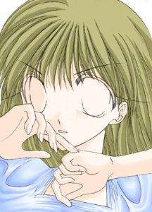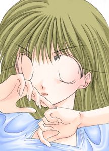 「肌」レイヤーの上に「肌影」レイヤーを作成…… した後、今回は肌の色が元々濃かったので、んじゃまあこっちを影にする事にしようかと急に思い立ち、「肌影」レイヤーには肌の色より薄い色を塗ってみました。 画面上の彼女の、左側面側の明るい方の塗りが「肌影」レイヤーのものです。 光源を何となく考え、光が当たるんじゃないだろかと思われる部分を薄い色で塗ります。 |