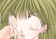 瞼というか睫というか……目の上の所を塗ります。 これは、「瞳」レイヤーという新規レイヤーを作成しそこに塗ります。 白目の部分の上下に、灰色で影をつける事も忘れずに…… |
