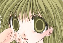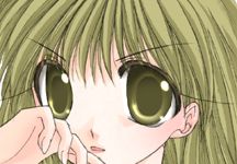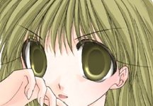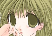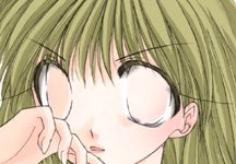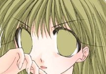 更に、「瞳3」レイヤーを作成 「瞳2」レイヤーで塗った瞳と同じ部分だけを選択範囲に入れ、瞳孔と瞳の外周をちょっと濃い色で塗ります。 |