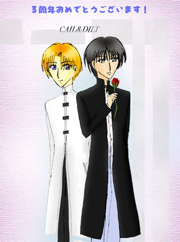 緋月湊さんから3周年のお祝いに頂きました、うちの小説Crusadeの登場キャラクター、ディルト王子とカイルです。