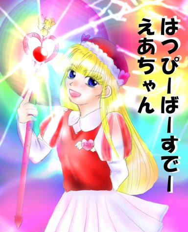 きなこさんからお誕生日のお祝いに頂きました、まほ……FE聖戦のスコピオです。 きゃあっ☆ キラキラ魔法少女ですよっ! 凄いです。これぞキラキラの真髄って感じの、素晴らしいイラストですよ! この目も眩むほどのキラキラ度が、スコピオのぷりちーな姿に見事にマッチしてますね。 スコピオ、さらさらの金髪だし、一見何の問題もなさそうなんですけどねぇ(そうか?) きなこさん、美麗なイラストありがとうございました〜☆