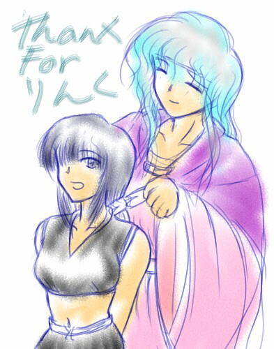 にゃルさんからこれもまたリンク記念で頂いた、ファイアーエムブレム聖戦の系譜ディアドラ様と にゃルさんのオリキャラレリアさんのツーショットです。 どこかラクチェのような元気よさそうなレリアさんが可愛らしいです。 ディアドラ様もすっごく優しそう〜。本当の親子みたいな感じですねっ☆ にゃルさんありがとうございました〜☆