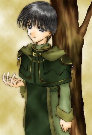 柊玖遠さんからのトップ絵リクエスト、腐れ大神官カイルタークです。 彼にしては毒気のないイラスト……まあ珍しいっ。 作中よく着てる「深緑色の法衣」、実は初描きだったりします。うーん。法衣にしては重そうな…… 多分ケープ?は外出用で普段はつけてないんですよ。うん。そういうことにしとこう。