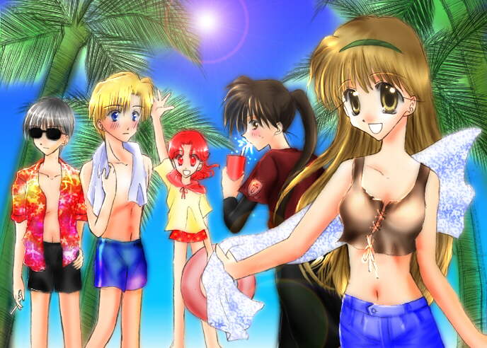 緋月湊さんからのトップ絵リクエスト「Crusade in ハワイ」です。本当はあと3、4人描きたかったのですが、気力も紙面も尽きました。