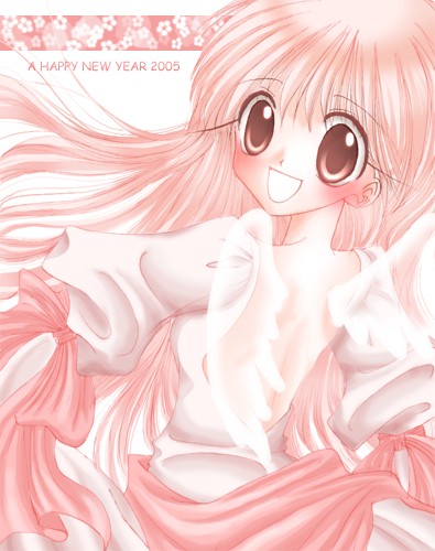 2005年おめでとうイラスト。今回も干支絡みの題材を入れまして、羽根。酉年は便利だね。 毎回ソフィアなのは描き易いから……という訳でもなく。むしろソフィアは妙に描き難いキャラなのですが どうしてか気がつくと描いてしまうんですよね。ライラさんの方が描き易いくらいなのに。 変な形の袖がちょっぴりお気に入り。ラブリー。