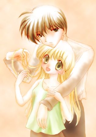 2003年夏コミで配布したオマケポストカードのイラスト。アーカイブに保存してたので作成日時が分かんなくなってしまった。 まあ何かいちゃつかせてみよう、と言った感じで。丁度この時に発行した3巻がそういう巻だったしね。 ちなみに言わなきゃ分かんないネタばれですが、これは最終話以降の二人のつもり。腕とか。